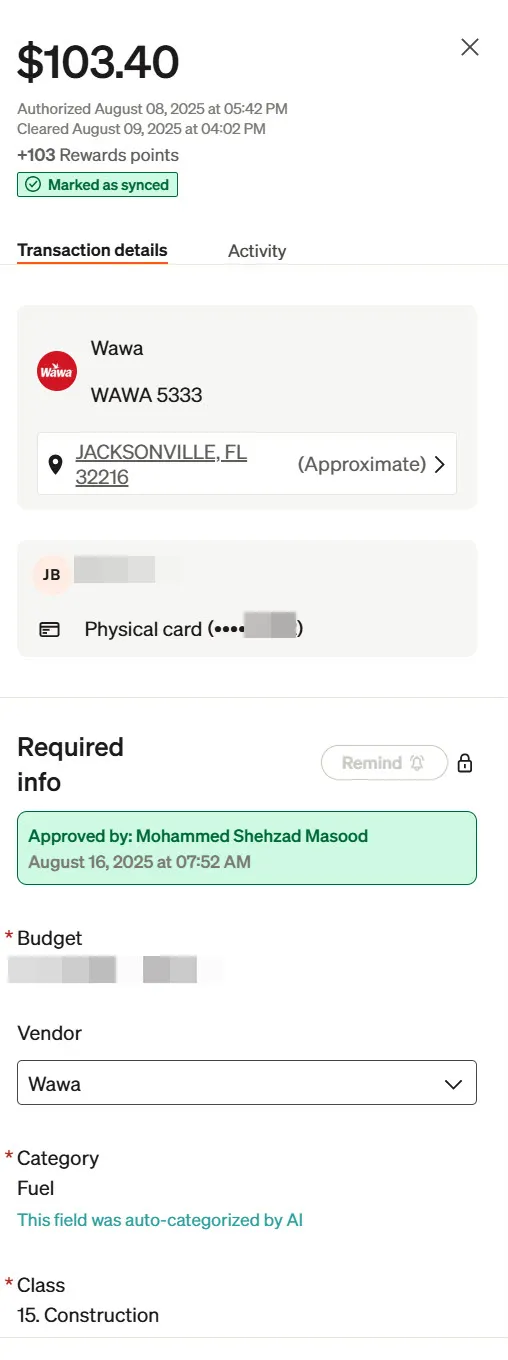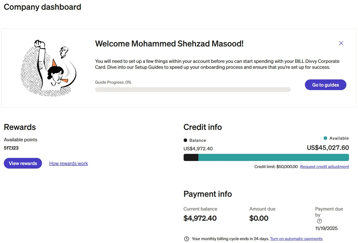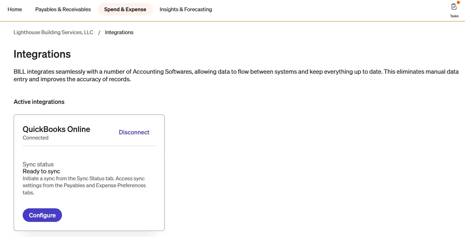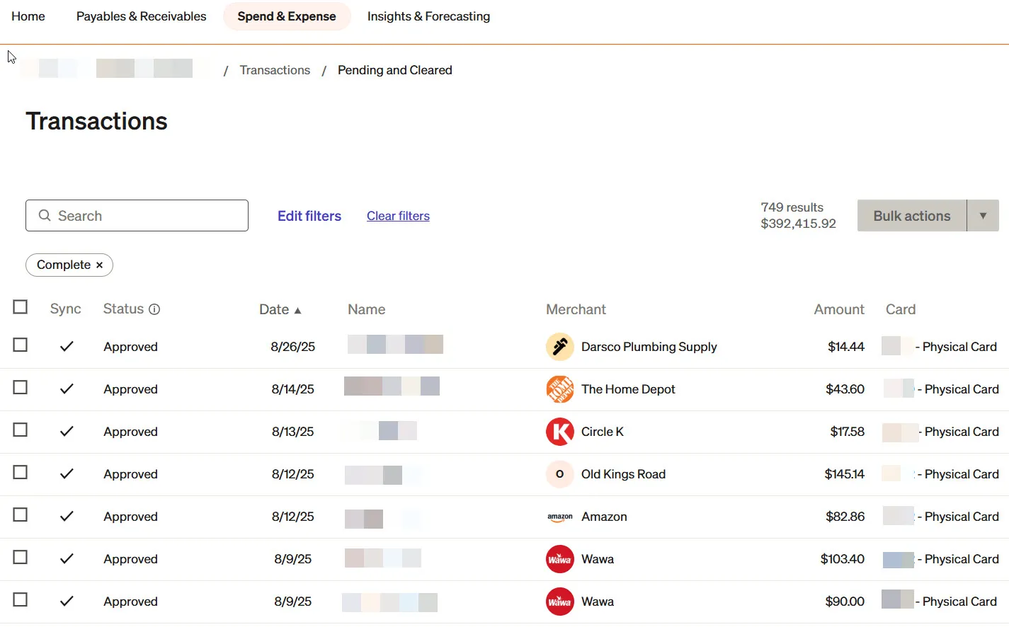 Managed company expenses using Bill.com Spend & Expense integrated with QBO for accurate tracking.