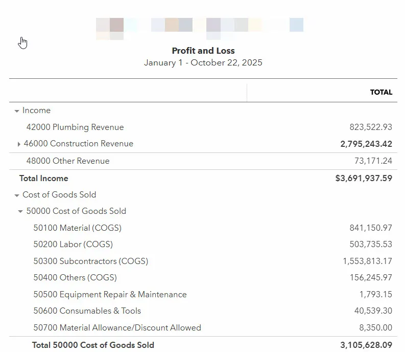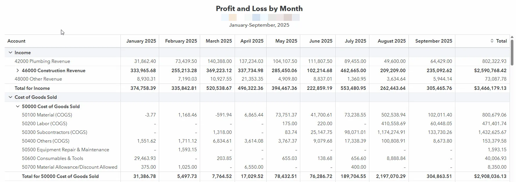 Prepared customized financial reports for a construction business including Profit and Loss, Profit and Loss by Class, Profit and Loss by Month, Project Profitability, and AR/AP Aging reports. These reports provided comprehensive visibility into project revenues, expenses, and cash flow. Enabled accurate tracking of receivables, payables, and profitability across multiple projects, helping management make informed financial decisions and improve overall business performance.