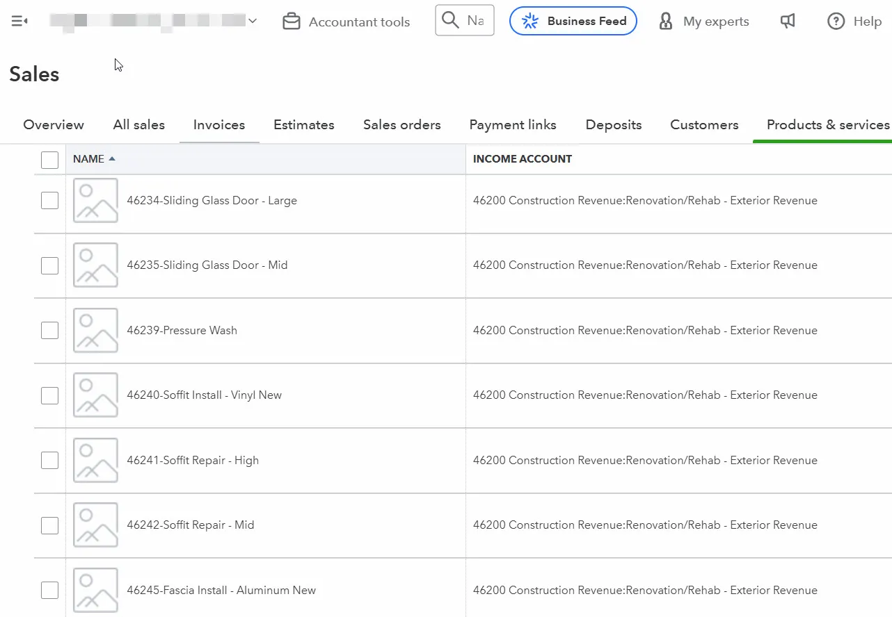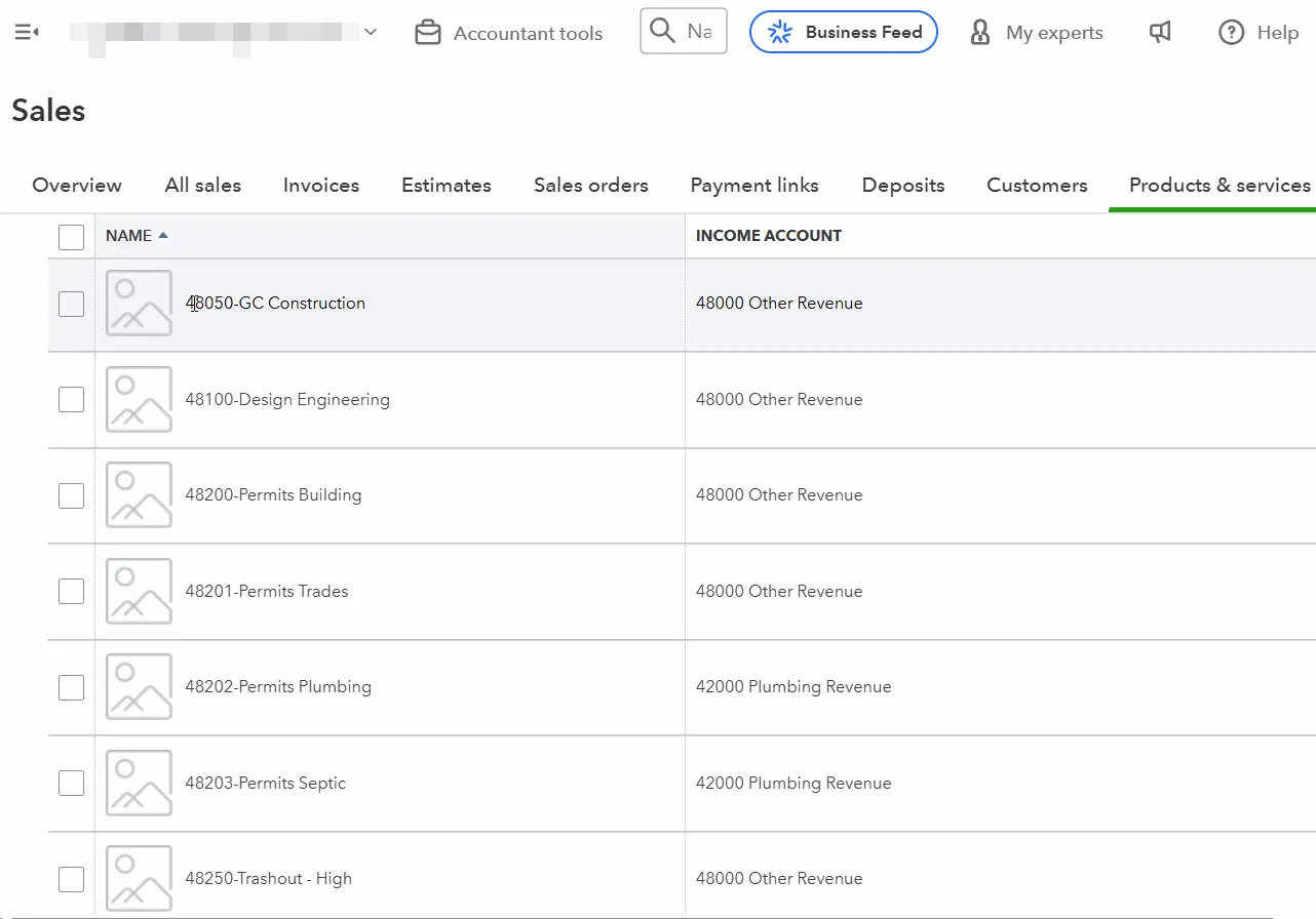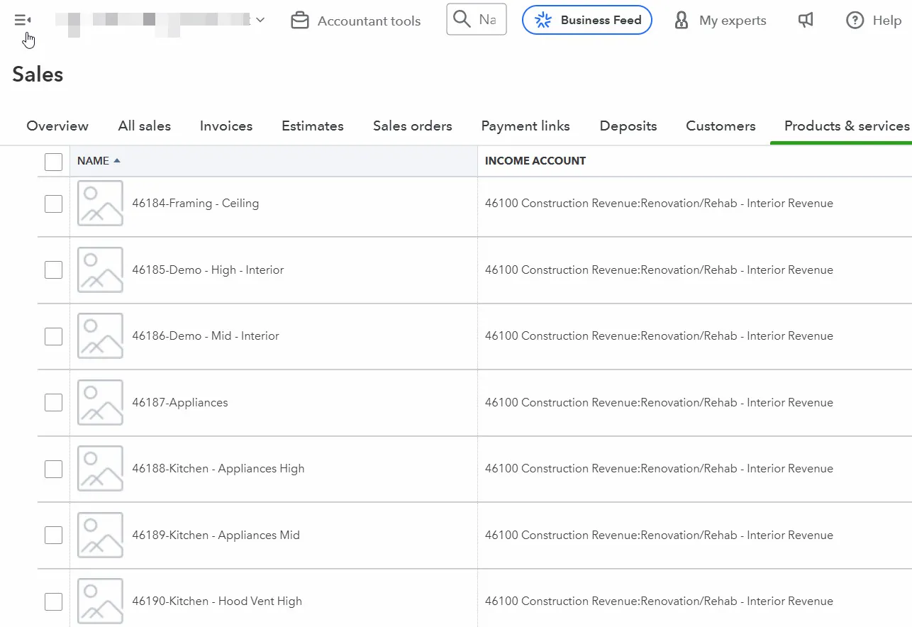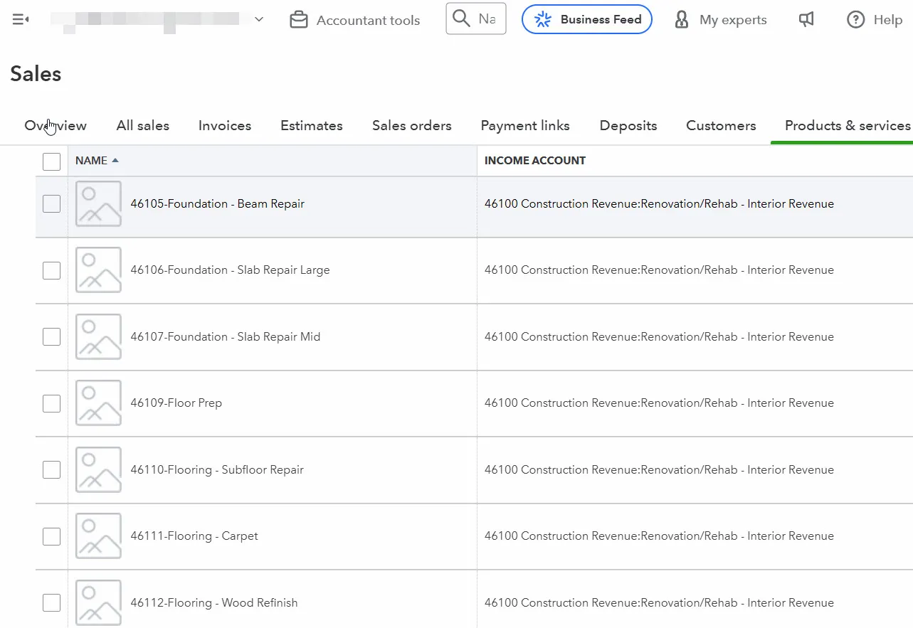 Created a customized Products & Services list in QBO to track construction materials & labor.